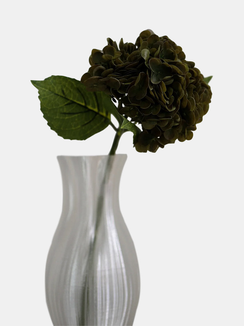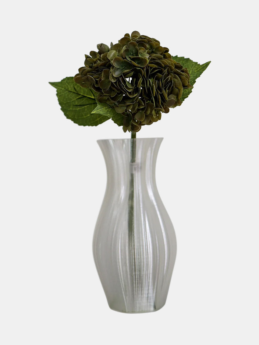Kunstig hortensia smuk udformet med fyldige blomsterhoveder i en faded grøn nuance, der realistisk efterligner hortensiaens naturlige farvespil og struktur. Den kræver hverken vanding eller vedligeholdelse og tilfører alligevel rummet en vedvarende elegance og et friskt, naturinspireret udtryk. Placeret i hjemmet