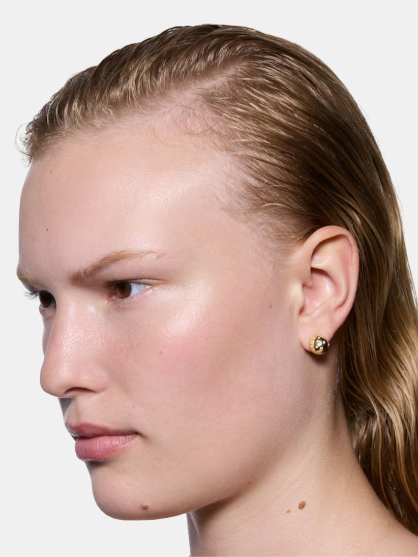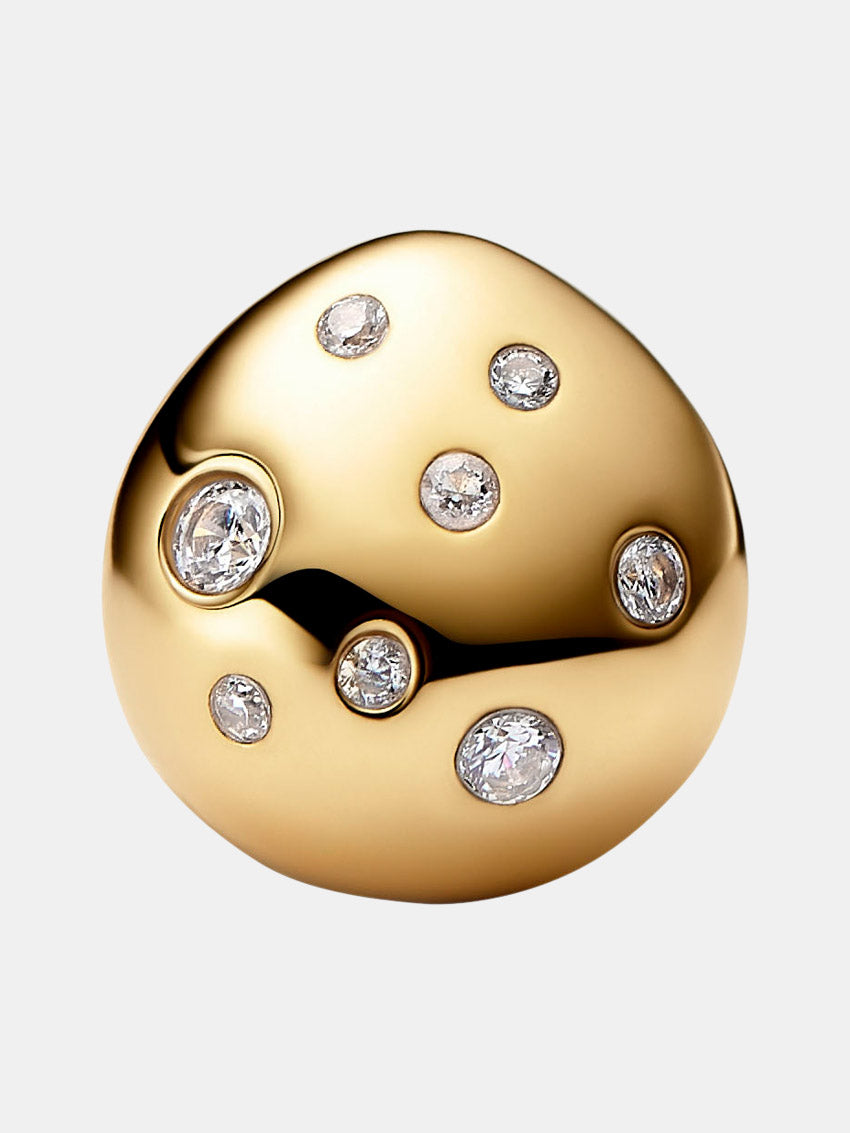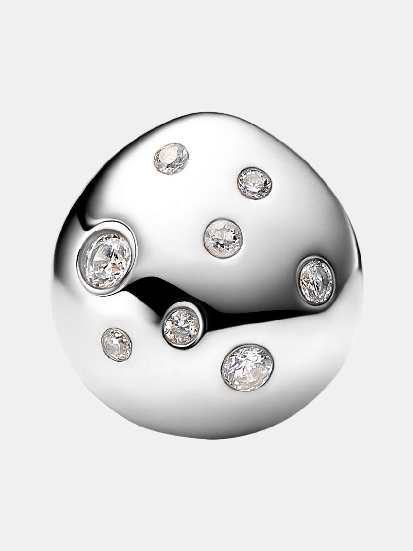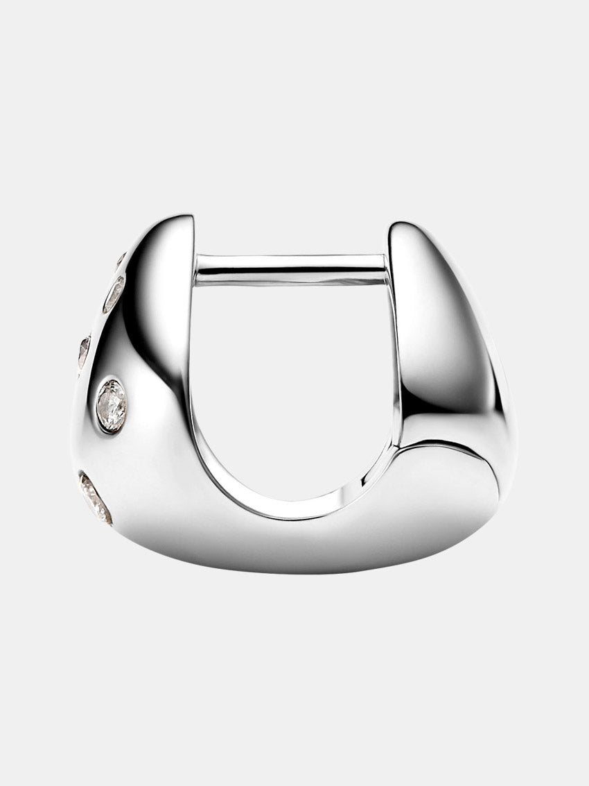 Huggie-ørering udført i eksklusivt håndværk af genanvendt sterlingsølv fra Maria Black. Den kuppelformede silhuet har en indvendig diameter på 5 mm og er prydet med håndsatte hvide zirkonia i varierende størrelser. Hypoallergenisk, nikkelfri og designet med kliklukning for en sikker og komfortabel pasform.