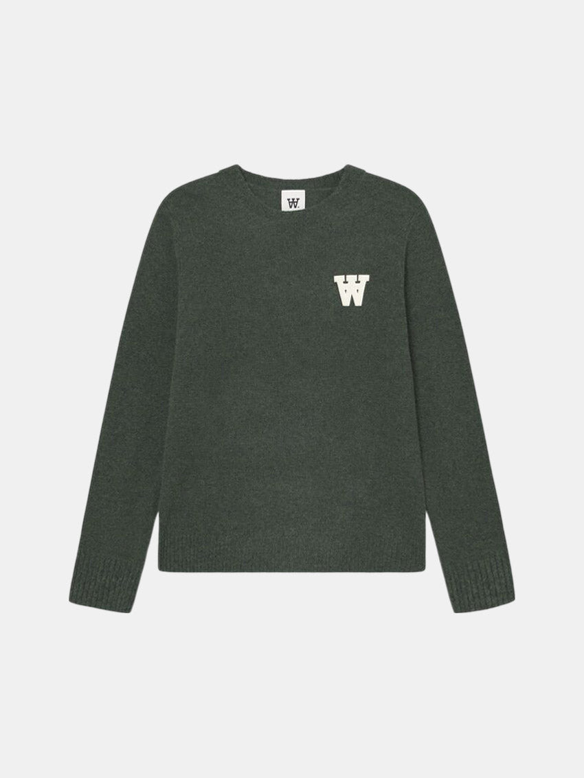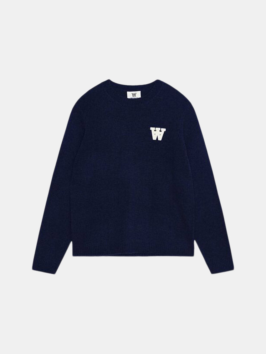 Lækker strik i lammeuld med AA logo på brystet fra Wood Wood.