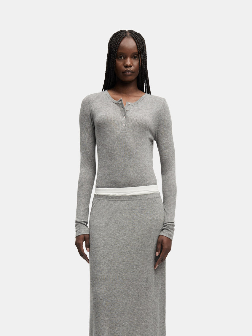 Langærmet jerseytop med slim pasform og rund hals. Designet med knaplukning foran og fremstillet i en blød blend af TENCEL™ Lyocell og uld for en let og behagelig komfort.