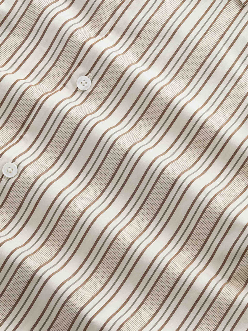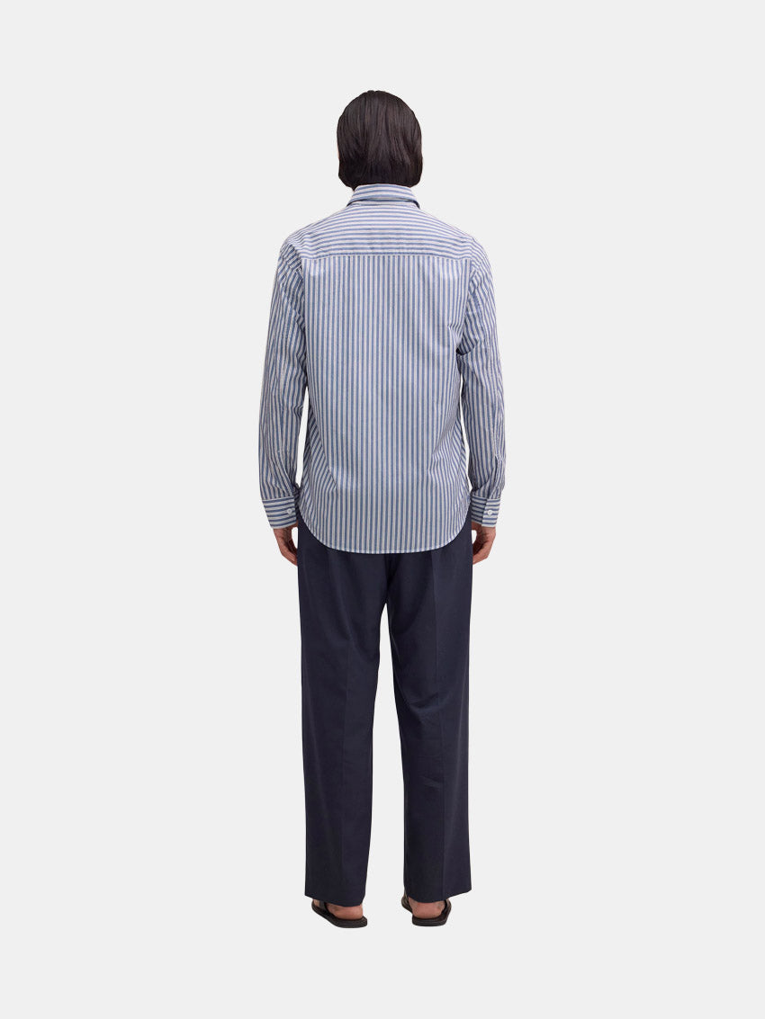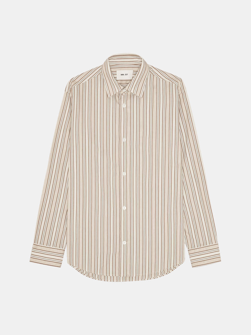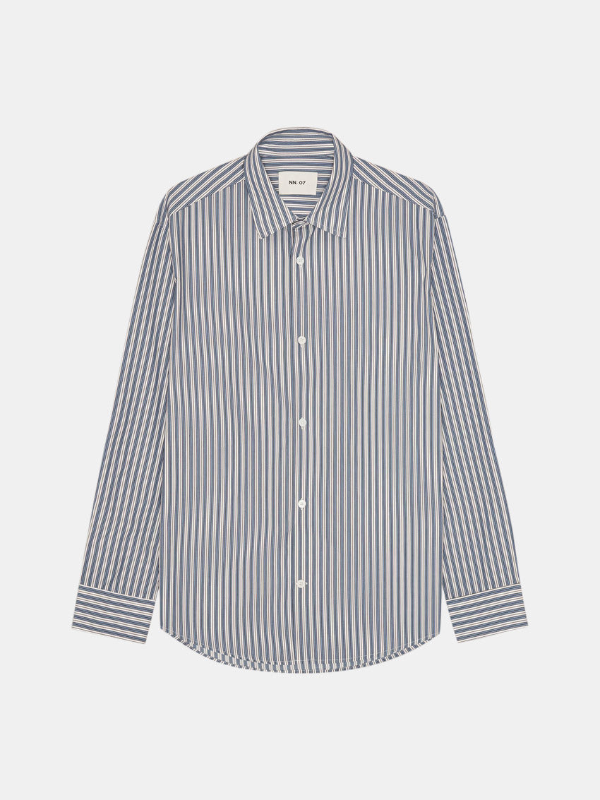 Let og glat skjorte fra NN07 i 100% bomuld, vævet i en garnfarvet stribe. Skjorten er afsluttet med knapper af perlemor for et elegant touch.