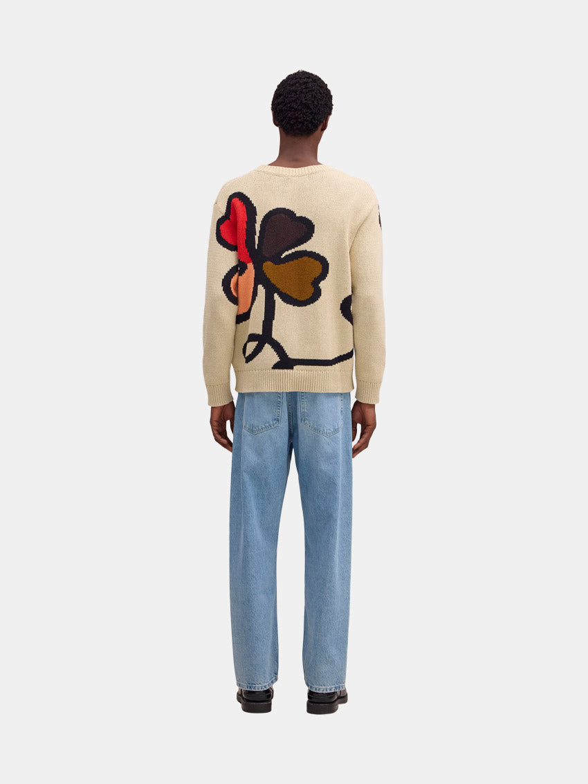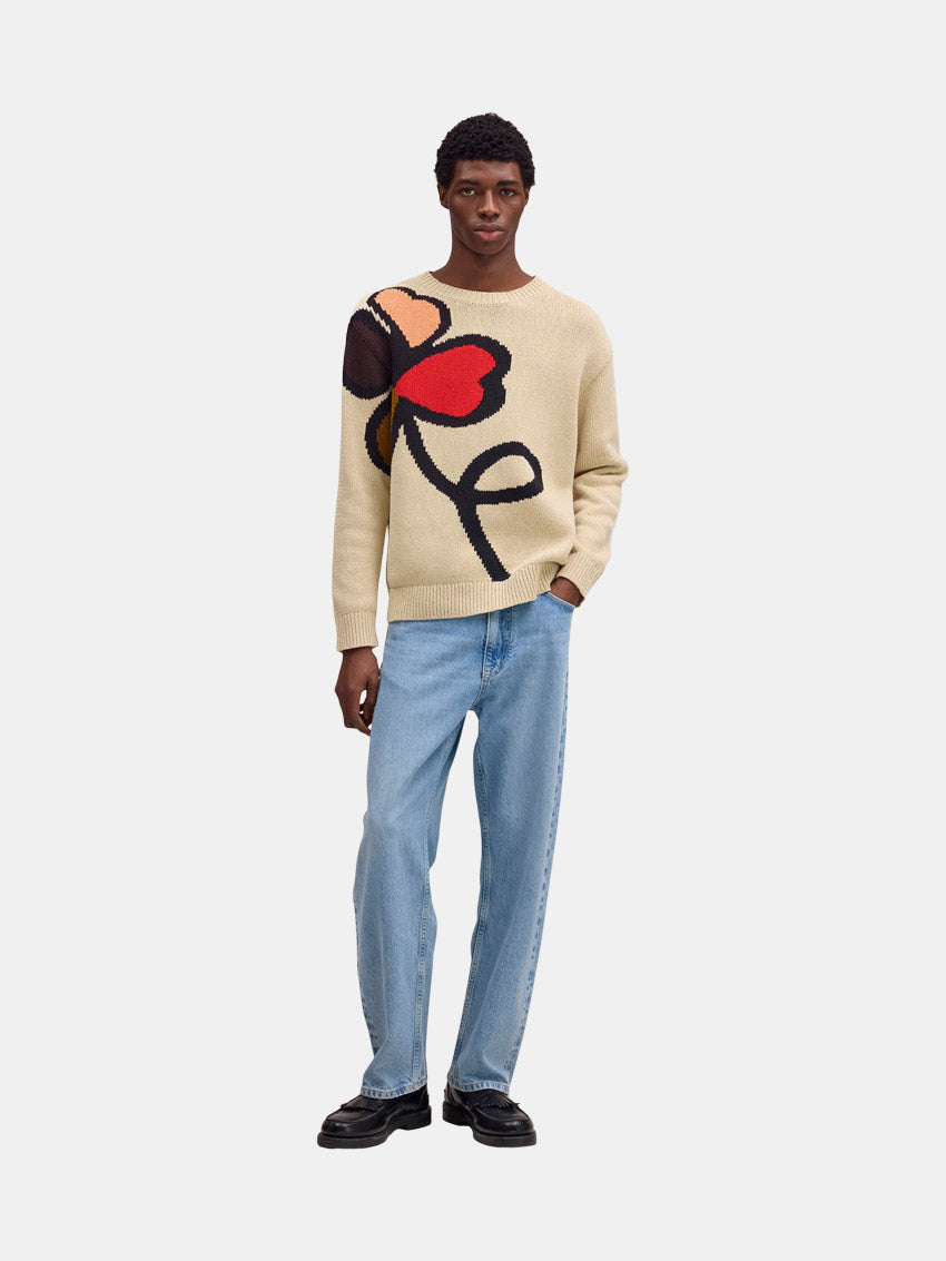 Chunky striktrøje fra NN07 i bomuld med en afslappet pasform. Den er fremstillet med intarsia-strik og et legende grafisk mønster, der giver et markant udtryk. Designet er afsluttet med en bred bådhals og en tør, struktureret overflade, som sikrer både komfort og stil.