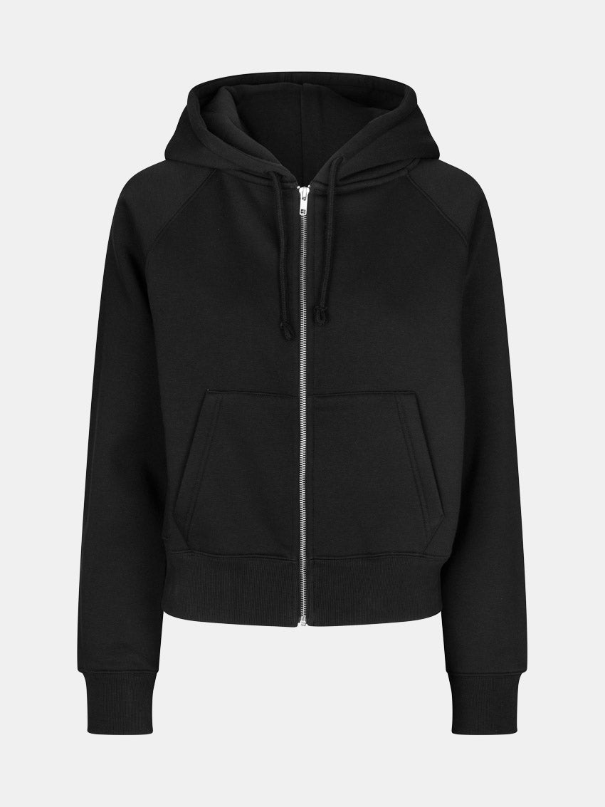 Hættetrøje med lange ærmer, sænkede skuldre og boxy silhuet fra Envii. Designet har lynlåslukning foran, ribmanchetter og ribkant forneden samt hætte med justerbar snøre. To lommer foran fuldender udtrykket. Hovedmaterialet er fremstillet i en behagelig bomuldsblanding