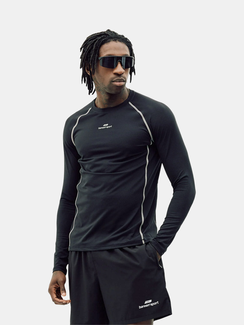 Active Long Sleeve fra Bareen er den perfekte base layer til din træning. Den er fremstillet i et blødt, tyndt og strækbart funktionsmateriale, der giver optimal komfort og bevægelsesfrihed, mens sidesømspanelerne understøtter en fleksibel pasform under aktivitet. Den tætsiddende silhuet kombineres med raglanærmer, et printet logo på fronten og synlige stikninger, der tilsammen skaber en formstærk og sporty finish.