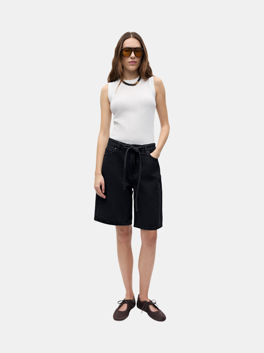 Bermuda-shorts fra Envii i denim med afslappet pasform og vide ben, der giver et casual og moderne udtryk. Designet har lav talje med lynlås og knaplukning foran samt klassiske denimdetaljer med to lommer og en møntlomme foran og to påsyede baglommer. Fremstillet i en bomuldsblanding, der sikrer både komfort og holdbarhed.