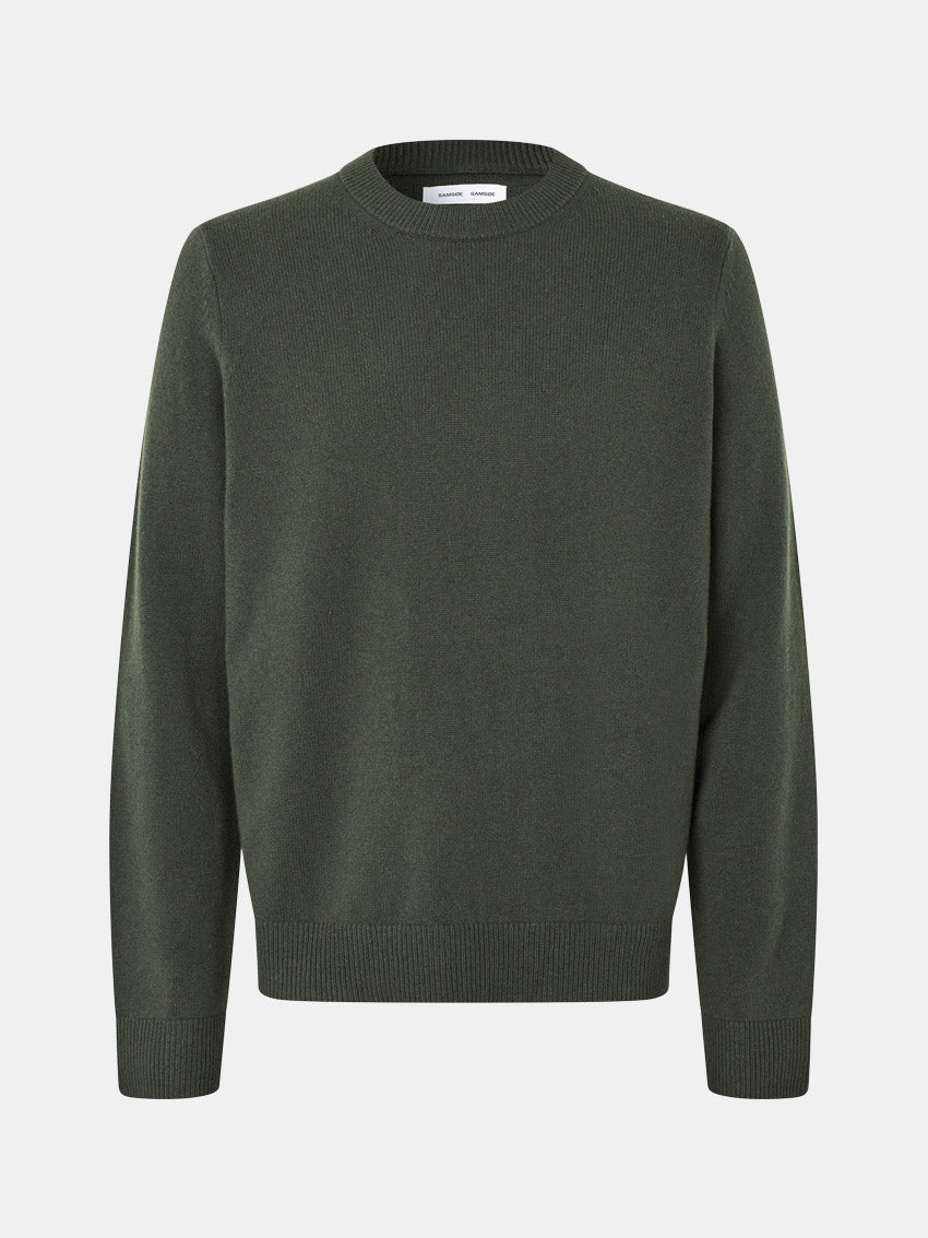 Mørkegrøn langærmet sweater i blød merinould med normal pasform fra Samsøe Samsøe.