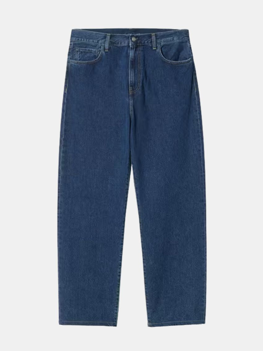 Landon Pant fra Carhartt er fremstillet i Robertson-denim, et tungt stof, der er stone-washed for en blødere fornemmelse. Bukserne har en loose tapered fit med almindelig talje, hvilket giver rummelighed på låret og en indsnævret pasform under knæet. Klassisk 5-lomme-design med en Square Label bagpå.