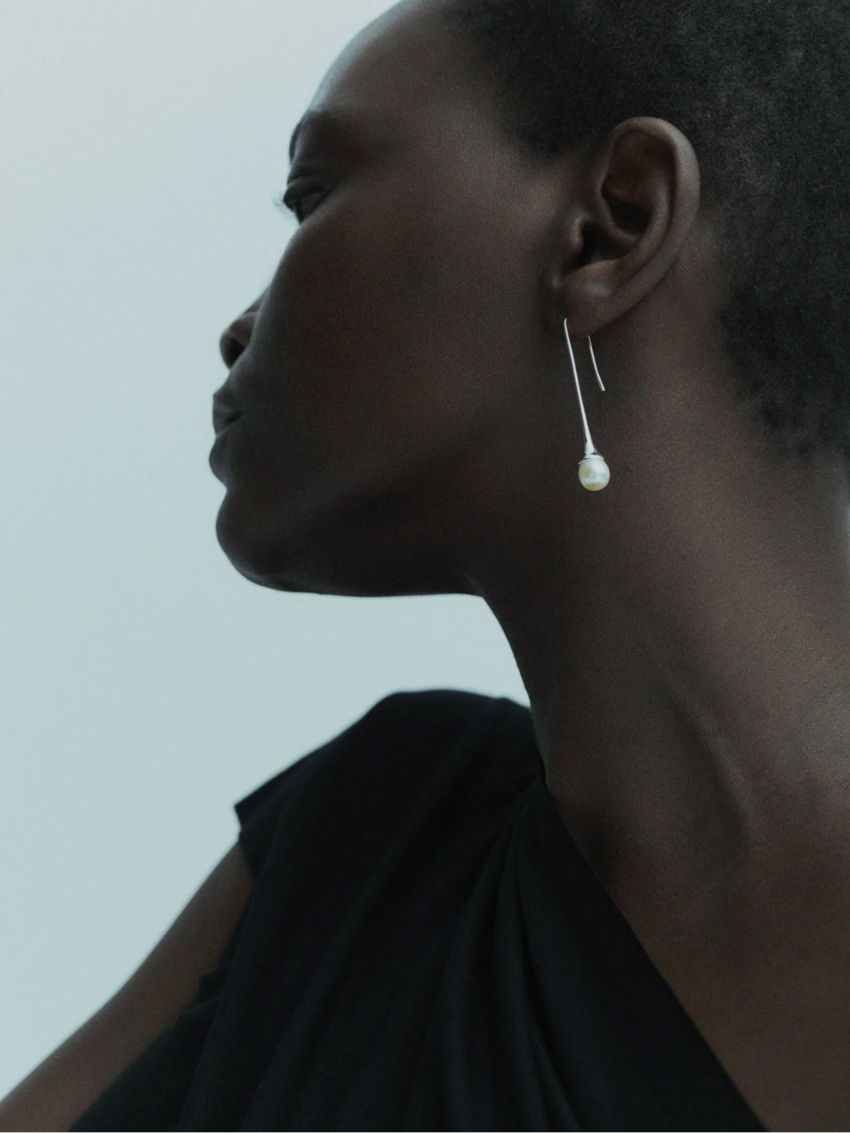 Lumora Drop Earrings i 925 sterlingsølv med en lang, slank bøjle, der elegant ender i en dråbeformet ferskvandsperle. Kombinationen af det fine metal og perlenes naturlige glød skaber en subtil og tidløs elegance. Et sofistikeret og minimalistisk smykke, der passer til både hverdag og festlige lejligheder.