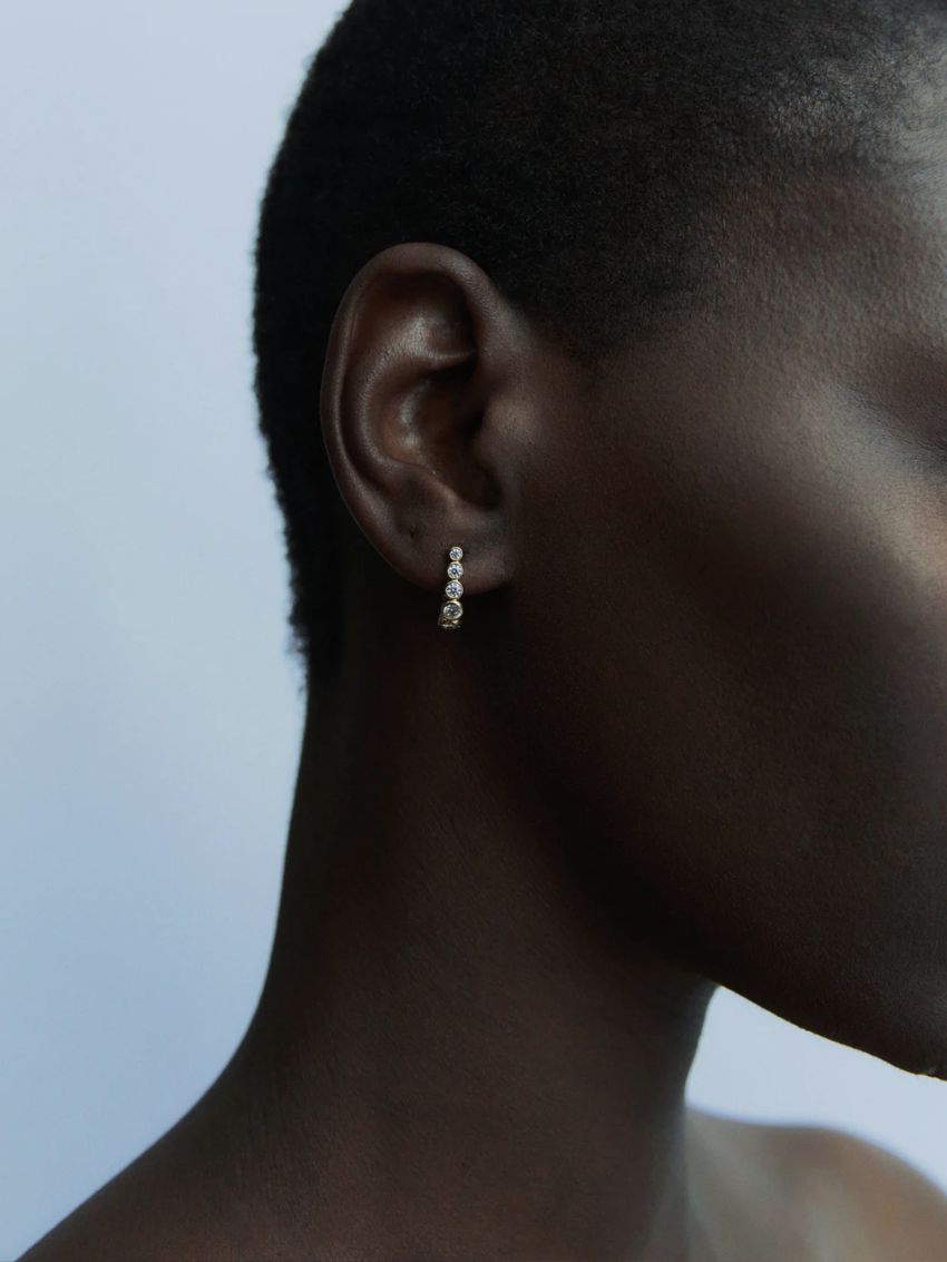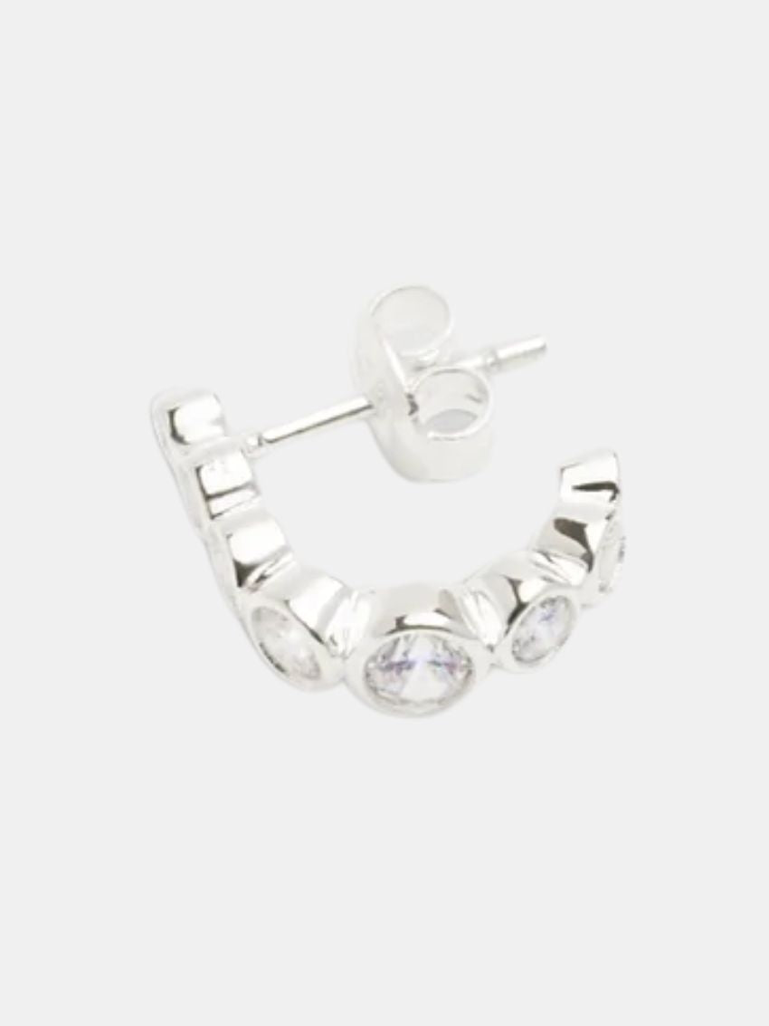 Ørering i mini-hook design i 925 sterlingsølv, dekoreret med funklende hvide brilliant-slebne kubiske zirkonia-sten fra RAGBAG. Et elegant smykke, der løfter både hverdags- og festoutfits.