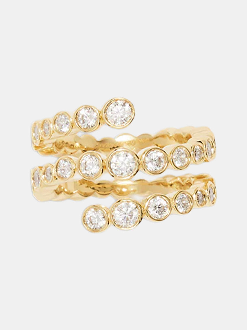 Spiralring i 925 sterlingsølv med glitrende hvide brilliant-slebne kubiske zirkonia-sten i forskellige størrelser fra RAGBAG. Den spiralformede konstruktion giver et unikt og elegant udtryk, der gør ringen til et perfekt smykke til enhver lejlighed.