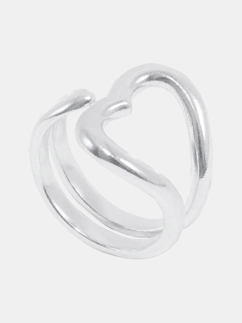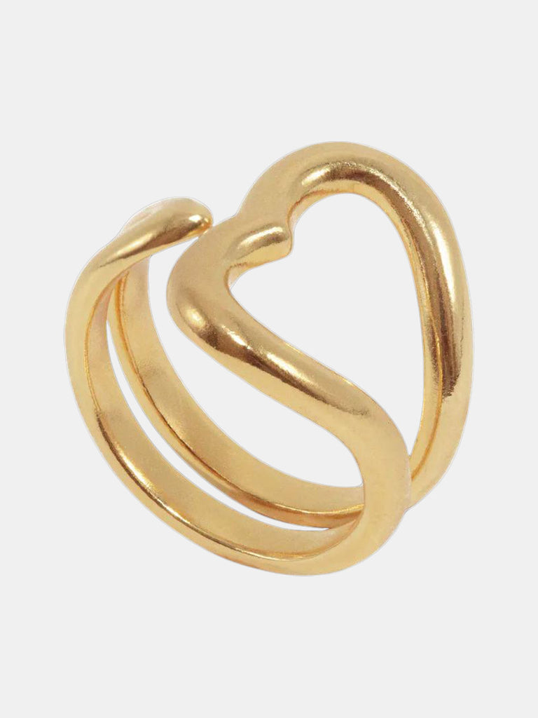 Fin ring, der består af to buer, der mødes i et hjerteformet design fra Jane Kønig.