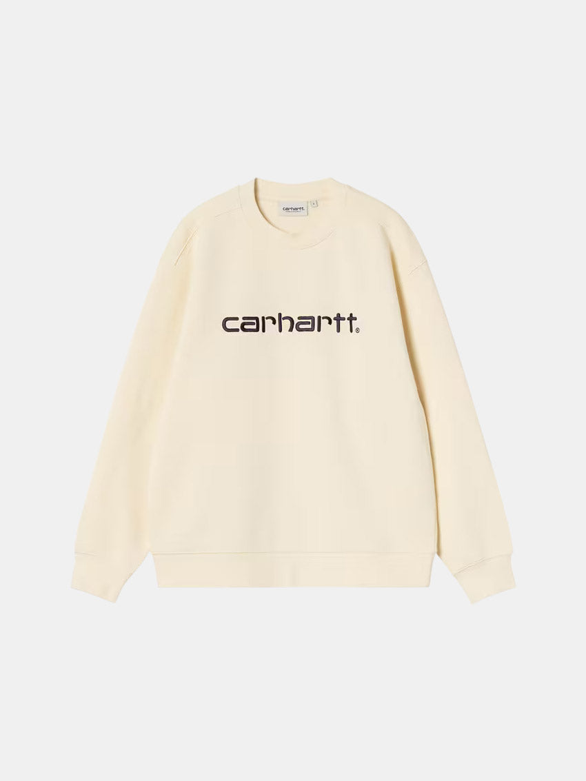 Sweatshirt fremstillet i en tung polycotton-jersey med børstet, fleeceagtig inderside fra Carhartt. Den har en regular fit, og et broderet Script-logo pryder brystet for et klassisk Carhartt-udtryk.