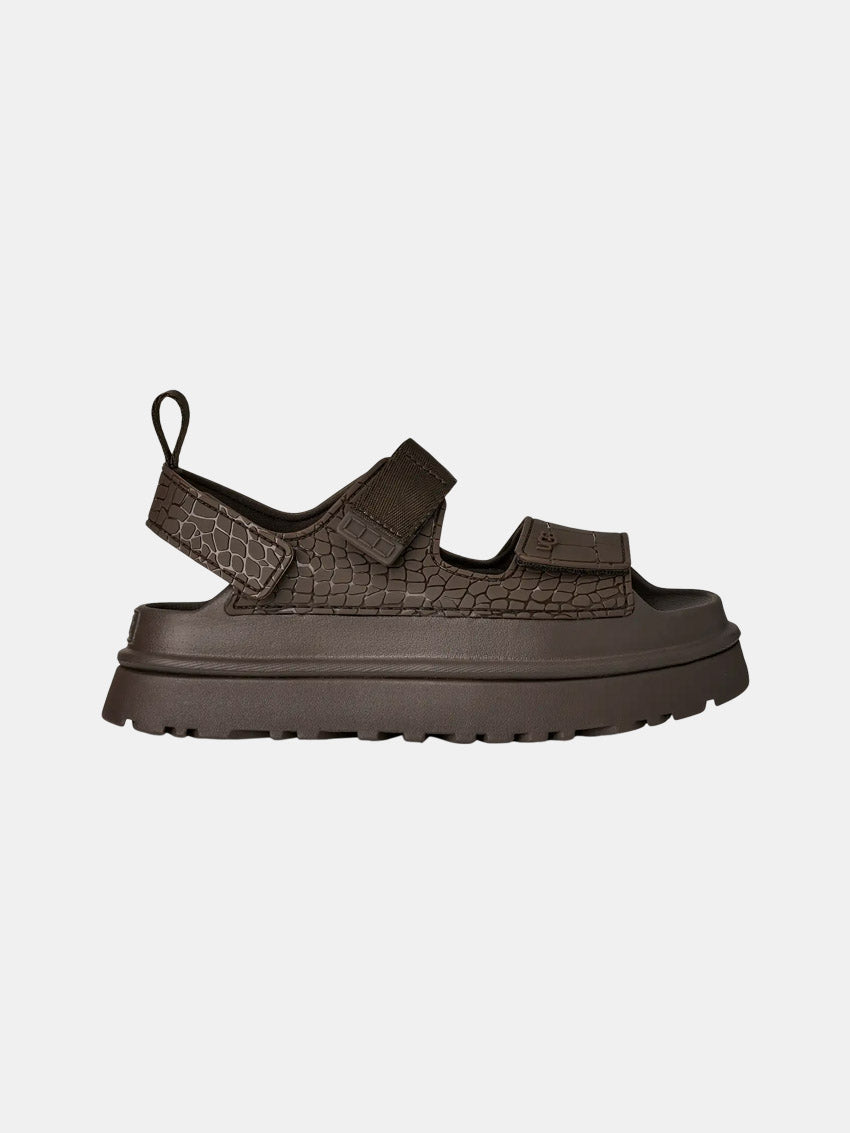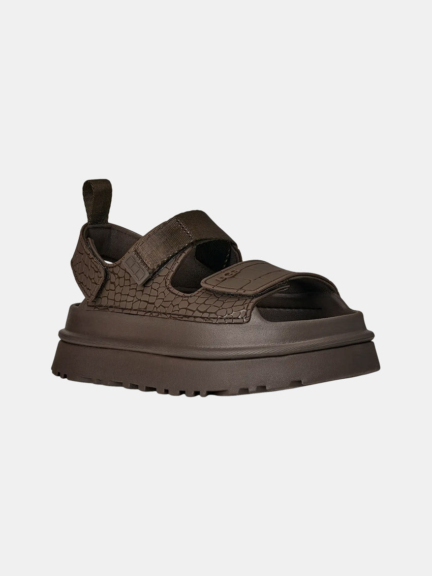 GoldenGlow Embossed sandalen hylder individualitet med sit unikke, præget croc-mønster – ingen par er helt ens. En sandal med lethed, attitude og feel-good vibes. Vi anbefaler, at skoene imprægneres med UGG's egne produkter inden brug. Produkterne kan købes som sæt her eller enkeltvis her.