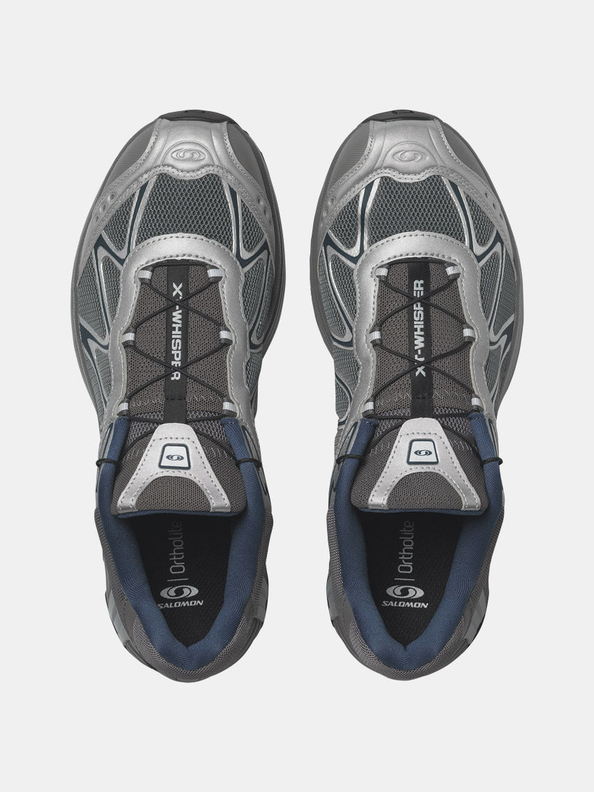 XT-Whisper fremhæver Salomons karakteristiske DNA og viderefører XT-traditionen med markante teksturer, lagdelte detaljer og en gennemført finish. Skoen kombinerer kontrastfyldte elementer med en opdateret overdel i eksklusive materialer og et bølget SensiFit™-design. Med Quicklace™-systemet sikres et optimeret fodfæste og en stabil pasform, der giver ekstra selvtillid på farten.